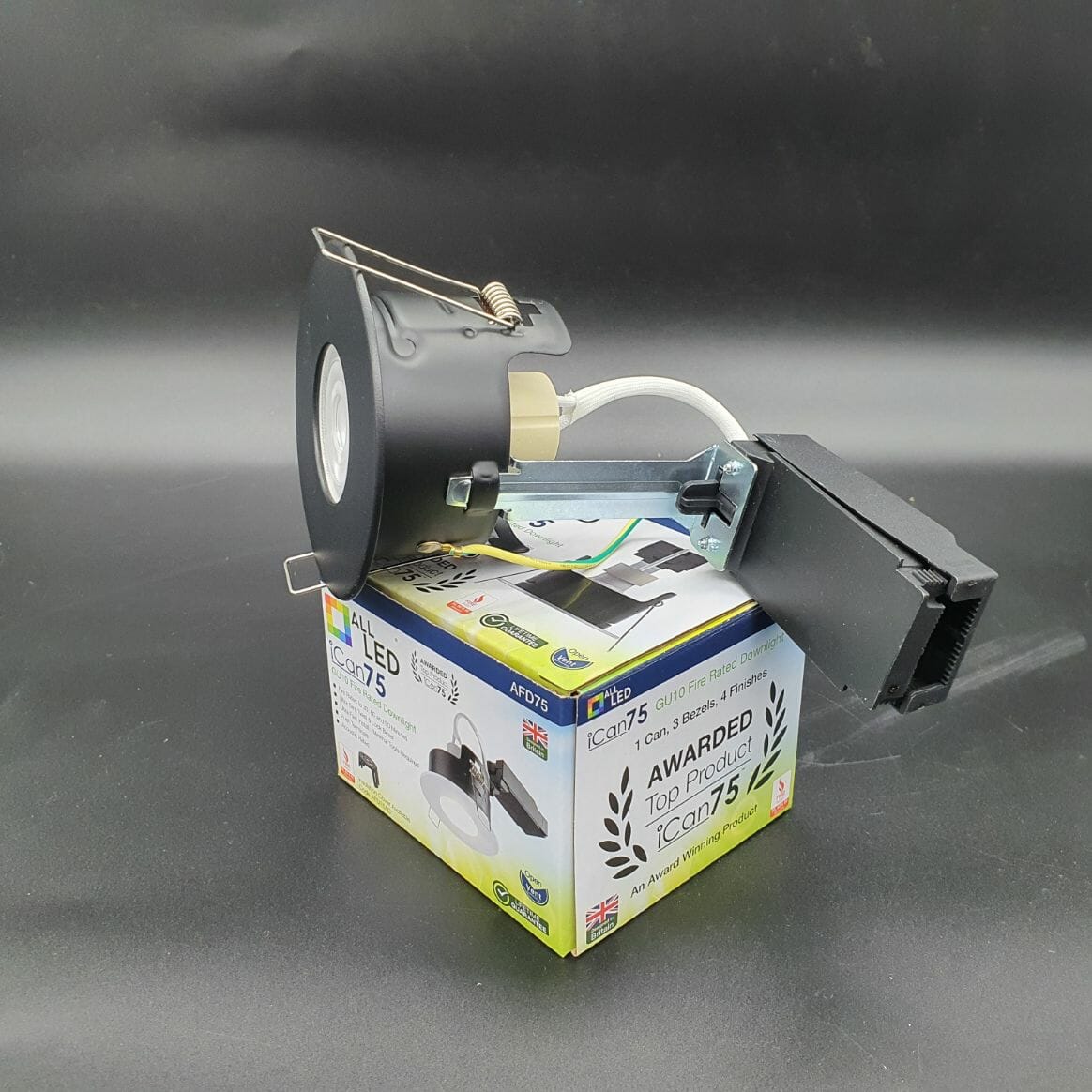 ALL LED ican 75 Fire Rated GU10 Downlight – Black Bezel