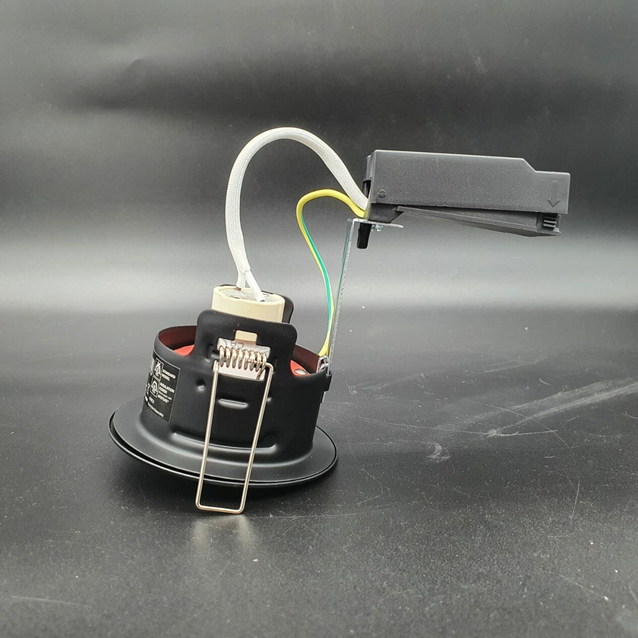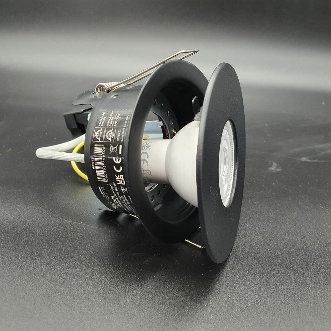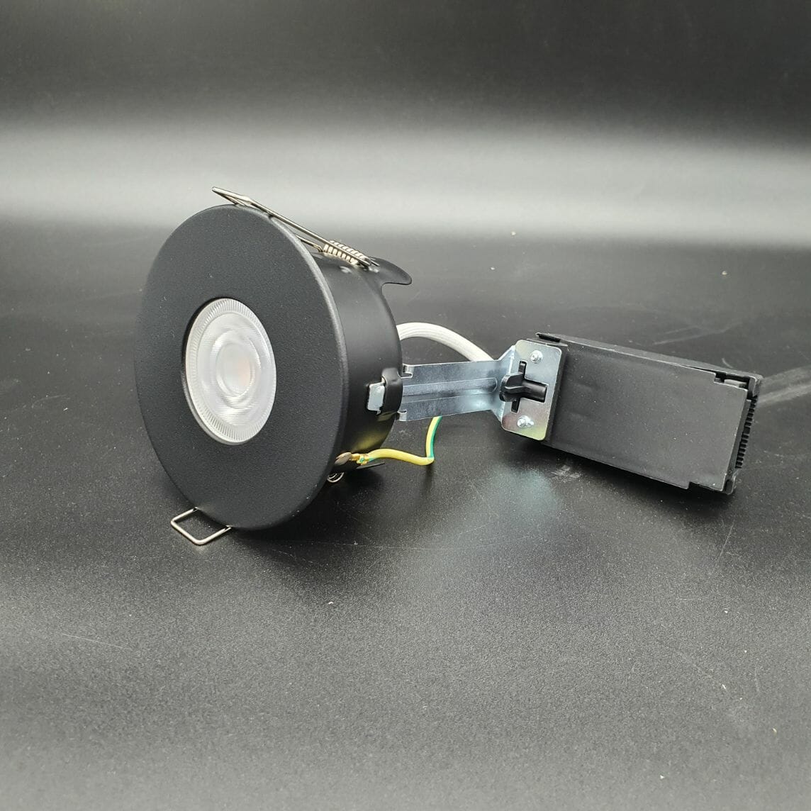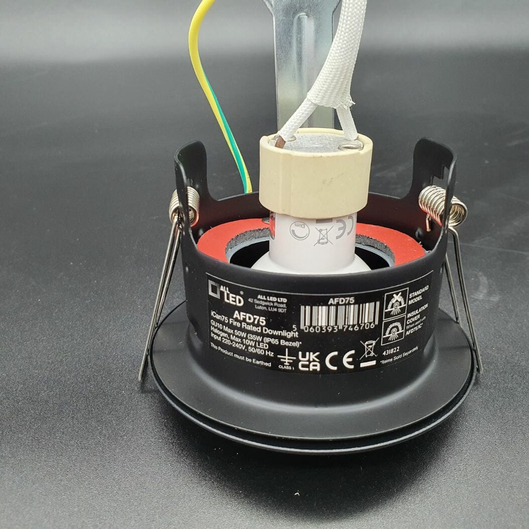 ican 75 Fire Rated GU10 Downlight complete with Ultra Slim Twist and Lock Black Bezel